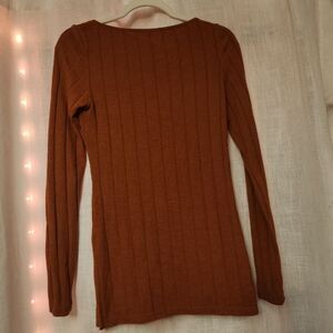 Anthropologie | Ribbed Knit Side Slit Long Sleeve Tunic Burnt Orange OB1620445