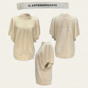 Anthropologie Ribbed Sweater Large Cream Knit Butterfly Sleeve Wool Blend EUC