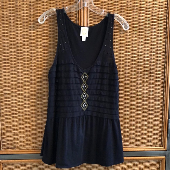 Anthropologie Black Beaded Sleeveless Top Size M