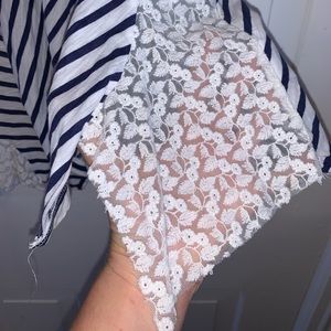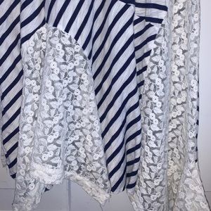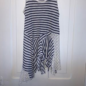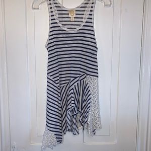 The Eliza Striped Tank, by Ric Rac, from Anthropologie. Unexpectedly, lacy panels replace some of the zig-zaggy striped ones that flounce the hem of Ric-Rac’s soft tank.
