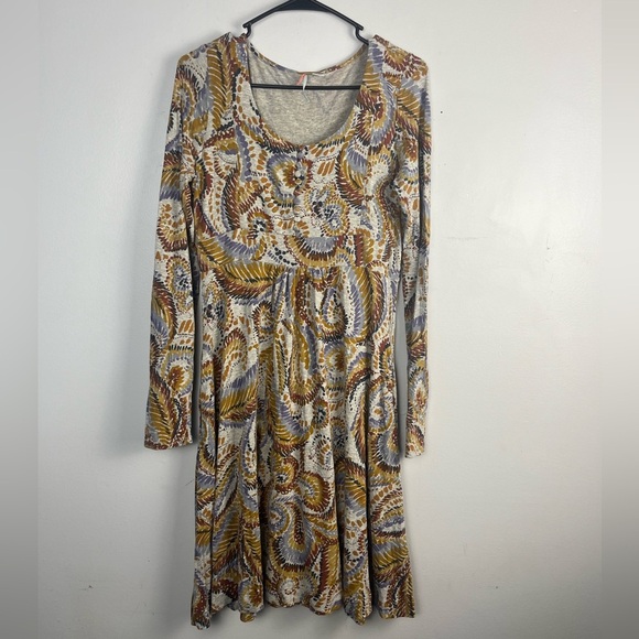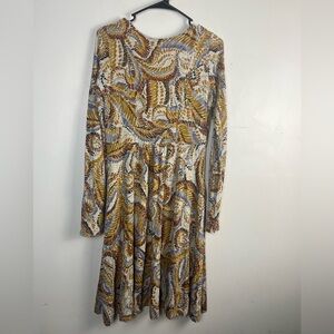 Anthropologie Ric Rac Feather Print Midi long sleeve dress size small wool blend