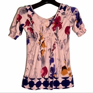 Anthropologie Ric Rac Ruched Floral Top Size Small