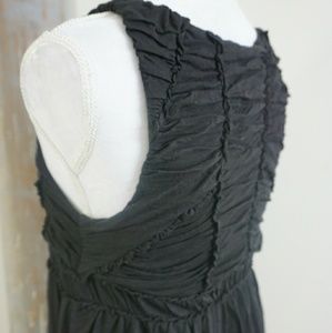 RIC RAC: Black sleeveless, 100% cotton tank. Features ruching through the top to a gathered waist and a double layered A-line bodice to hemline. Graduated with hi/lo cut. Super cute and new with tags.