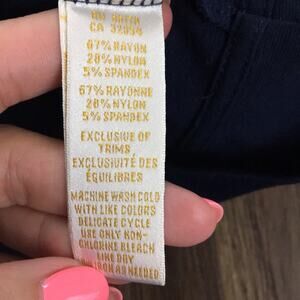 Size S. 67% Rayon 28% Nylon 5% Spandex. Length 27 inches. Armpit to armpit 14 1/2 elastic band. Super stretchy. Front pockets. Great condition!