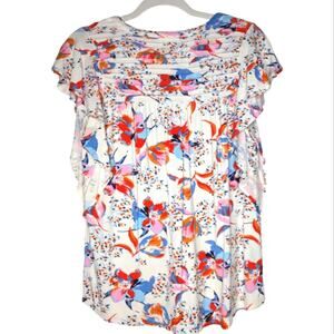 Anthropologie Ridged Yoke Floral Print Ruffle Sleeve Boho Cottagecore Knit Top
