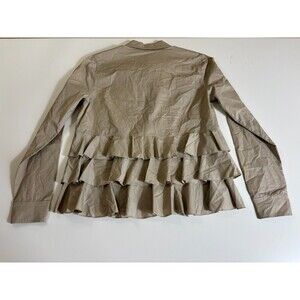 Anthropologie Ro & De Shirt Womens Medium Beige Ruffle Back Collar Button Up NWT