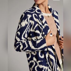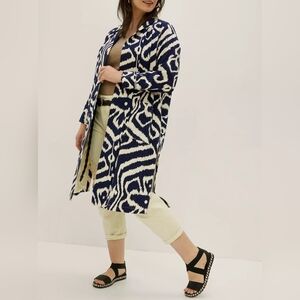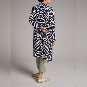 Anthropologie Robbie Duster Jacket Navy and White Oversized Abstract Motif SMALL