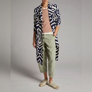 NWOT Anthropologie Robbie Duster Jacket Navy and White Oversized Abstract Motif SMALL