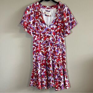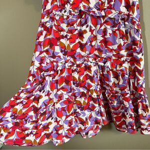 Anthropologie women’s Robin tiered red and purple mini dress.