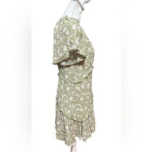Anthropologie Robin Tiered Mini Dress in Moss Floral Pattern Size XS
