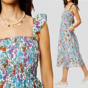 Anthropologie Roller Rabbit Blomst Doe silk & cotton floral shirred sundress