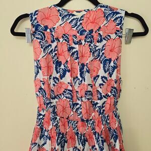 Anthropologie Roller Rabbit Hibiscus Floral Print Mini Dress Sleeveless Blue Red.