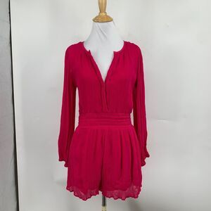 Anthropologie Romper Womens S Small Hot Pink The Somerset Long Sleeve Keyhole