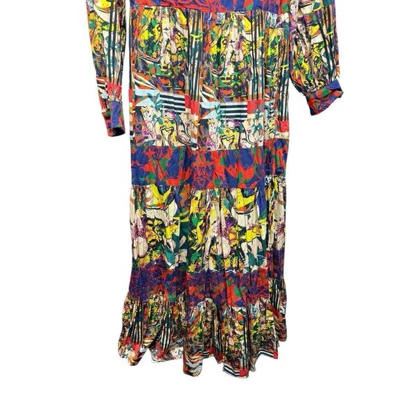 🌸 Anthropologie x Roopa Pemmaraju Maxi Dress – an artistic boho statement piece! 🎨✨ This stunning dress features a vibrant floral & patchwork print, deep V-neckline, long billowy sleeves, and a flowy tiered skirt – the perfect mix of elegance and free-spirited charm! 💃