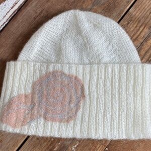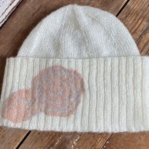 Anthropologie Rose Cashmere Embroidered Beanie