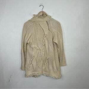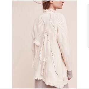 Anthropologie Rosie Neira Rima Cream Fringe Boho Cardigan Size XS