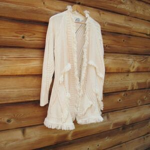 Anthropologie Rosie Neira Wool Cotton Fringe Cardigan Sweater