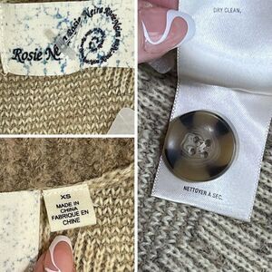 New with tags. retail $168. Anthropologie Rosie Neira Sz XS Intarsia Spotted Cardigan Sweater Grandpa Tan Textured. Bell Sleeves. Double Breasted. Button High collar. Measurements in the photos. No rips, holes, or stains. Comes from a smoke free environment.