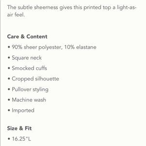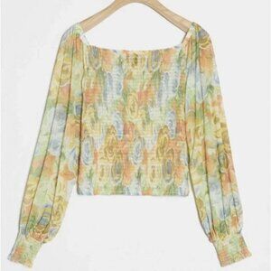 Anthropologie Rouen Floral Crop Top Blouse Small Long Sleeves Smocking Stretch