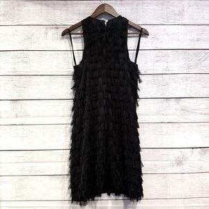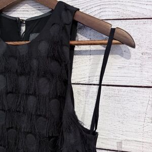Anthropologie Roxie Black Fringe Mini Dress Textured Sleeveless Size 2 Party