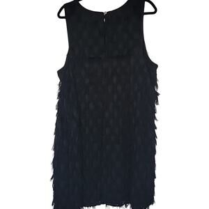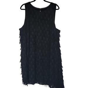 Channel your inner flapper in this all over fringed shift dress. Keyhole back with button, knee length.