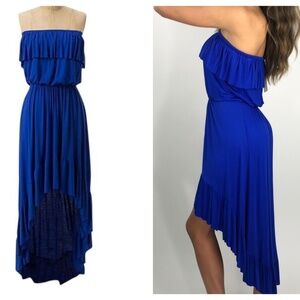 NWT. Royal Blue Flirty Dress. Hi/Low, Ruffles. Elastic Waist and Bust. Loose Fitting. Lightweight.