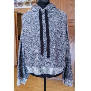 Anthropologie Ruby Moon Large Gray White Marled Knit Cropped Sweater Hoodie. Lightly worn or maybe never worn.