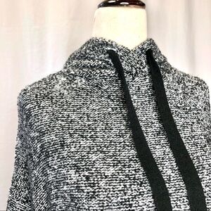 Ruby Moon for Anthropologie cropped boxy sweater. Black and white yarns are held together for marled effect, horizontal reverse stocking knit stitch adds texture. Dropped shoulder seams with wide sleeves.