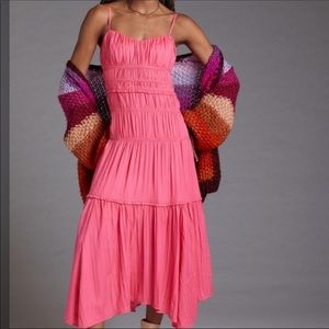 Anthropologie Ruched Slip Dress- Raspberry