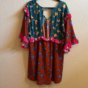Anthropologie Ruffle Bohemian Mini Dress In Novelty Size Large