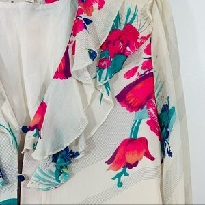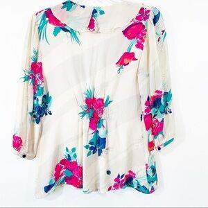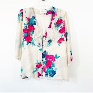 Anthropologie Ruffle Silk Floral Top