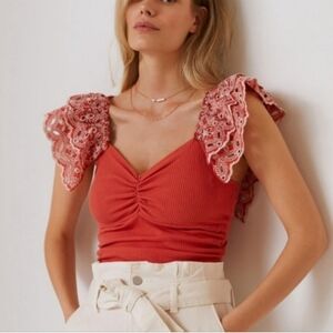 Anthropologie Ruffle Sleeve Eyelet Top New