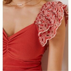 very feminine pretty romantic coquette ruffled eyelet spring summer vacation resort boho festival cruise top