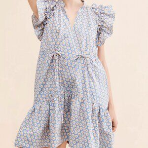 Anthropologie Ruffle-Sleeve Mini Dress Size L