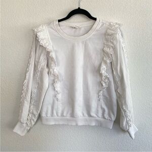 Anthropologie Ruffled Boho Eyelet White 100% Cotton Sweatshirt - XS
