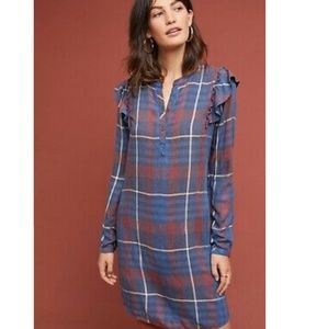Adorable plaid dress with cute shoulder ruffles. Button front shirt style dress. Brand new, bought from Anthropologie, NWT.