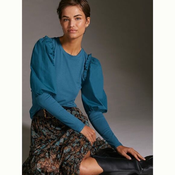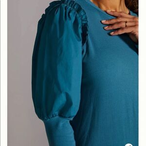Anthropologie Ruffled Contrast Top | Size: XS Petite | Color: Turquoise