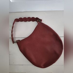 Anthropologie Rust Colored Leather Circle Shoulder Bag | Braided Strap