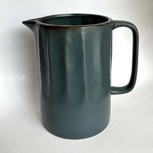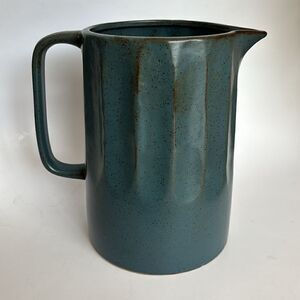 Anthropologie Rustic Matte Blue Design Ceramic Pitcher