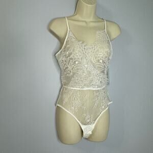 Rya Collection Eleanor Teddy Lace Bodysuit Romantic Sexy Ivory White New