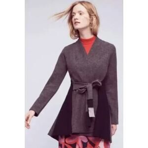 Anthropologie S grey wool tie front cardigan