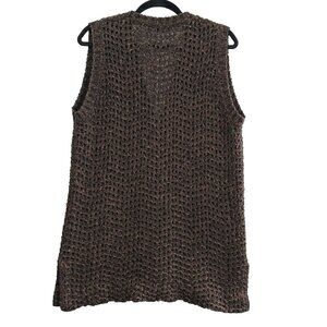 Brown Sleeveless Button Front Open Knit Casual Layers