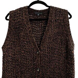 Anthropologie SANCTURARY Women Sweater Size L Brown Button Front Open Knit 54-3