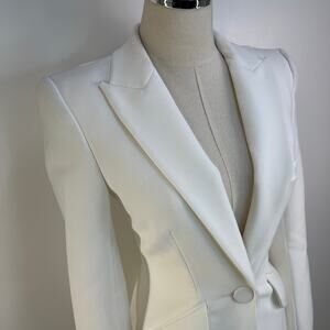 New with tags, unused, no flaws or odors. Featuring a flattering tapered waist, the expertly tailored Sloan Structured Blazer features ultra-structured shoulder pads and a plunging neckline, exuding sleek style and undeniable allure.