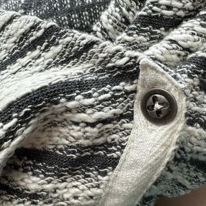 This Anthropologie cardigan is a versatile piece perfect for travel, workwear, or casual occasions. The tight-knit, black knit fabric with button closure and cowl neckline is the perfect combination of bohemian, classic, and preppy styles. The ruched cuff and button accents add a touch of elegance to the jacket.