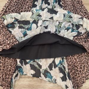 Anthropologie SEN Sz M Ava Pleated Floral Leopard Mixed Print Asymmetrical Skirt