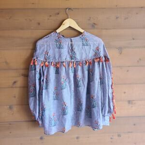 Anthropologie Sachin Babi Acacia Top Tassle Floral Bishop Sleeve NWT Blouse M