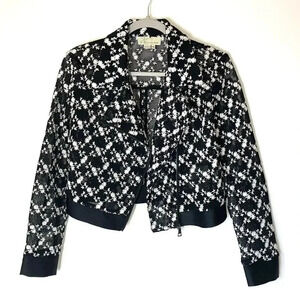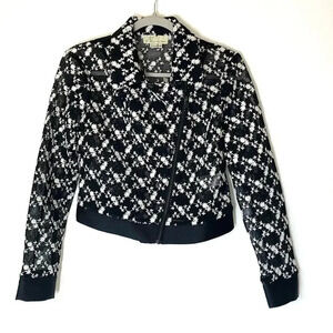 Anthropologie Sachin & Babi Black Mesh Floral Embroidered Moto Jacket Size XS