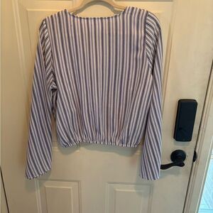 Anthropologie Sadie & Sage White and Blue Wrap Blouse