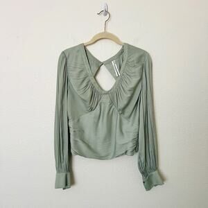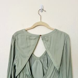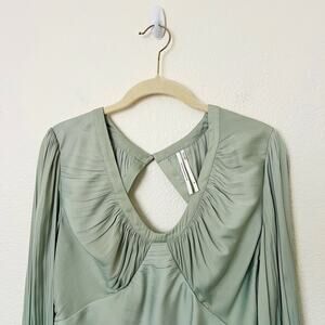 By Anthropologie Size Medium Sage Green Silk Smocked Back Blouson Sleeve Blouse